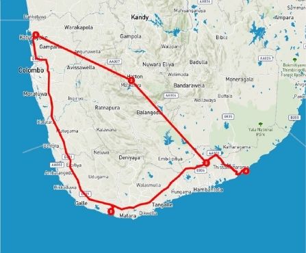 COLOMBO, HATTON, YALA, WELIGAMA