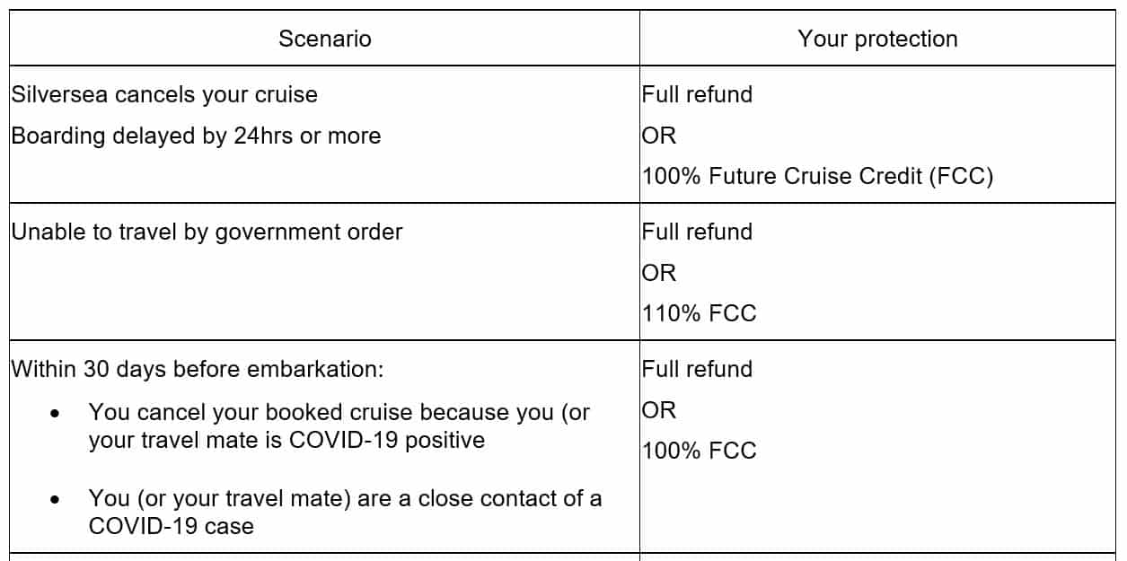 Plan ahead for future voyages without worrying about uncertainties brought by the changing COVID situation or government border policy. Discover how the COVID-19 protection works in different scenarios and you are most welcome to speak to our luxury travel specialists for more information. You are entitled to this protection by booking on or before 30 Nov 2021, applicable to ALL Silversea Cruises voyages.